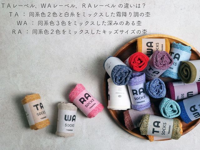 『TA』レーベル、『WA』レーベル、『RA』レーベル の違いは? 『TA』 同系色2色と白糸をミックスした霜降り調の杢 『WA』 同系色3色をミックスした深みのある杢 『RA』 同系色2色をミックスしたキッズサイズの杢 ■color 64グリーン 54ブルー 15グレー 23グレージュ 301コーヒー 262コーラル 48ターコイズ 18プラム 37マスタード 651レッド ■size S(22.5-24.5cm)レディース M(25-27cm)メンズ[メーカー希望小売価格/定価]550円(税込)