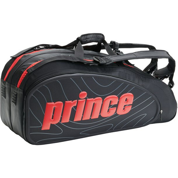 【SALE】プリンスラケットバッグ(TT902-236)[Prince BAG](BLK/RED)6本入り